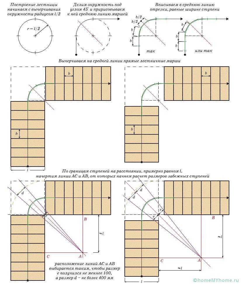 Как выполнить расчет лестницы с поворотом: чертежи и схемы