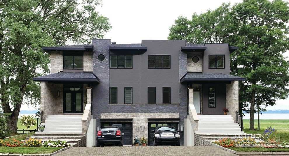 Таунхаус на 2 семьи представлен дуплексом. Это жилой комплекс, состоящий из двух многоэтажных домов, которые соединены одной общей стенкой. Такое строение предназначено для проживания двух семей. Твинхаус схож по устройству и назначению с дуплексом, в нем могут также проживать две семьи. Однако отличаются такие строения тем, что первый вариант представлен двумя отдельными домами с разной архитектурой, имеющими общую стенку, что отображают проекты таунхауса на две семьи.