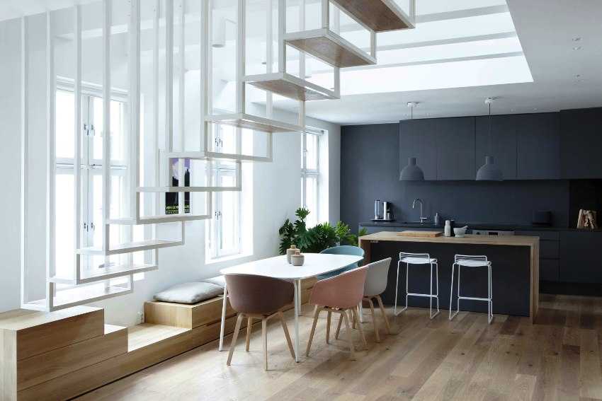 Межуровневая лестница в таунхаусе: фото вариантов оформления