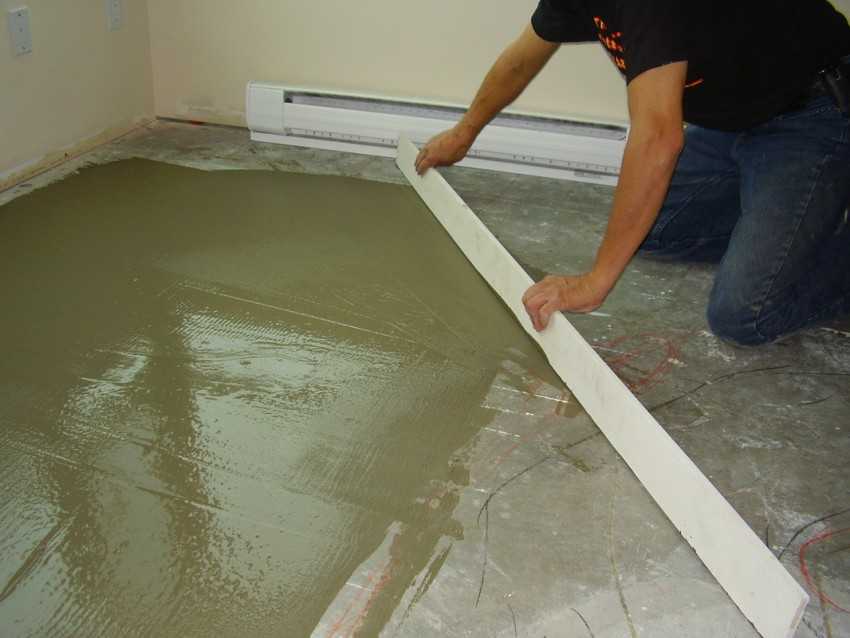 От качества поверхности будет зависеть долговечность пола в дальнейшем. Основой для стяжки является цементно-песчаная смесь.
