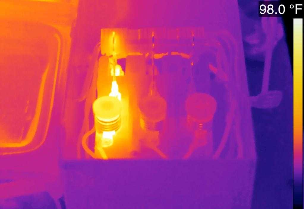 Холодные батареи и нарушение работы теплого пола для жителей некоторых регионов нашей страны — беда, недооценить масштаб которой невозможно. Если нет тепловизора, найти источник проблемы достаточно сложно. Если же инструмент имеется, выявить наличие и место образования воздушной пробки или течь водяного тёплого пола не составит труда.  Здесь отлично видна воздушная пробка в радиаторе отопления