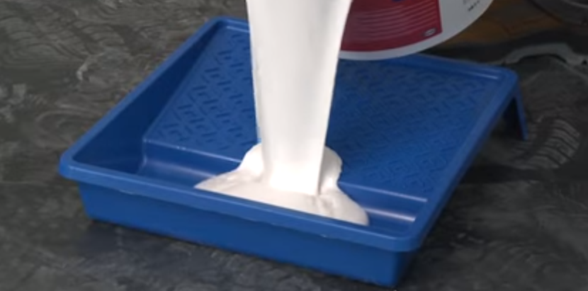Шаг 1. В малярный лоток или любую другую подходящую емкость наливают столько грунтовки, чтобы в нее можно было погрузить 1/3 объема ролика валика.