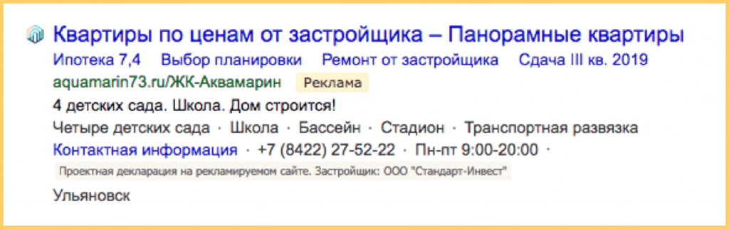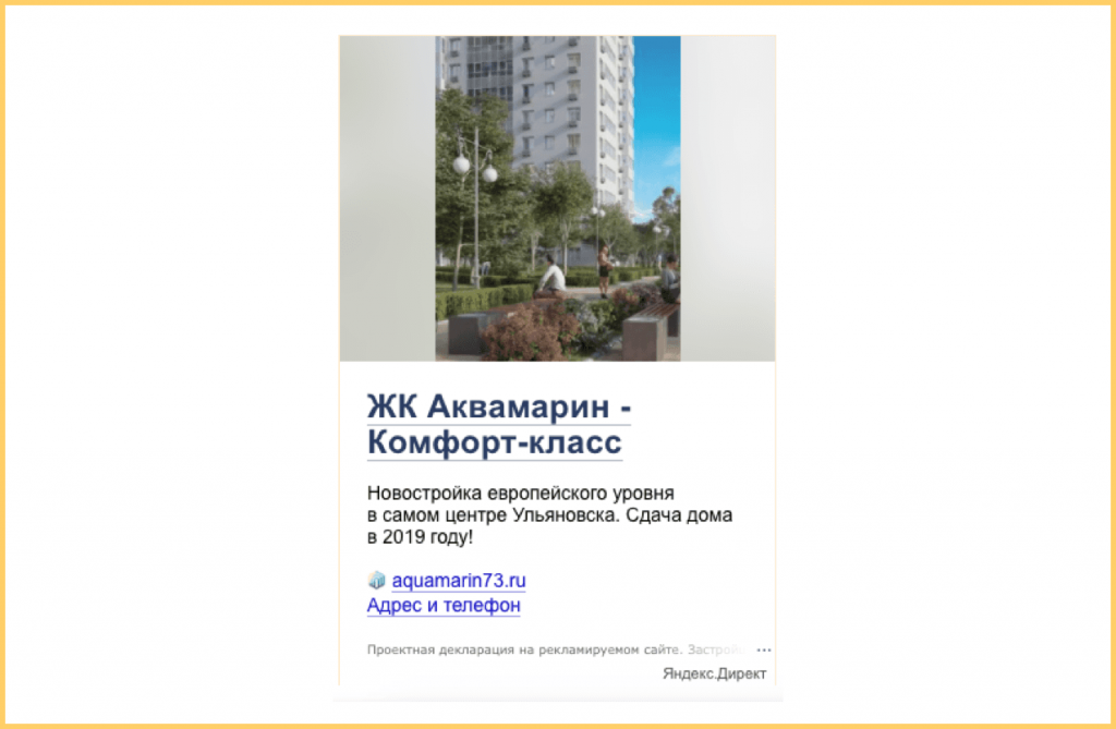 - Контекстная реклама в Google.Adwords и Яндекс.Директ. Объявления составляются на основе прямых запросов, которые пользователи набирают интересуясь покупкой жилья.