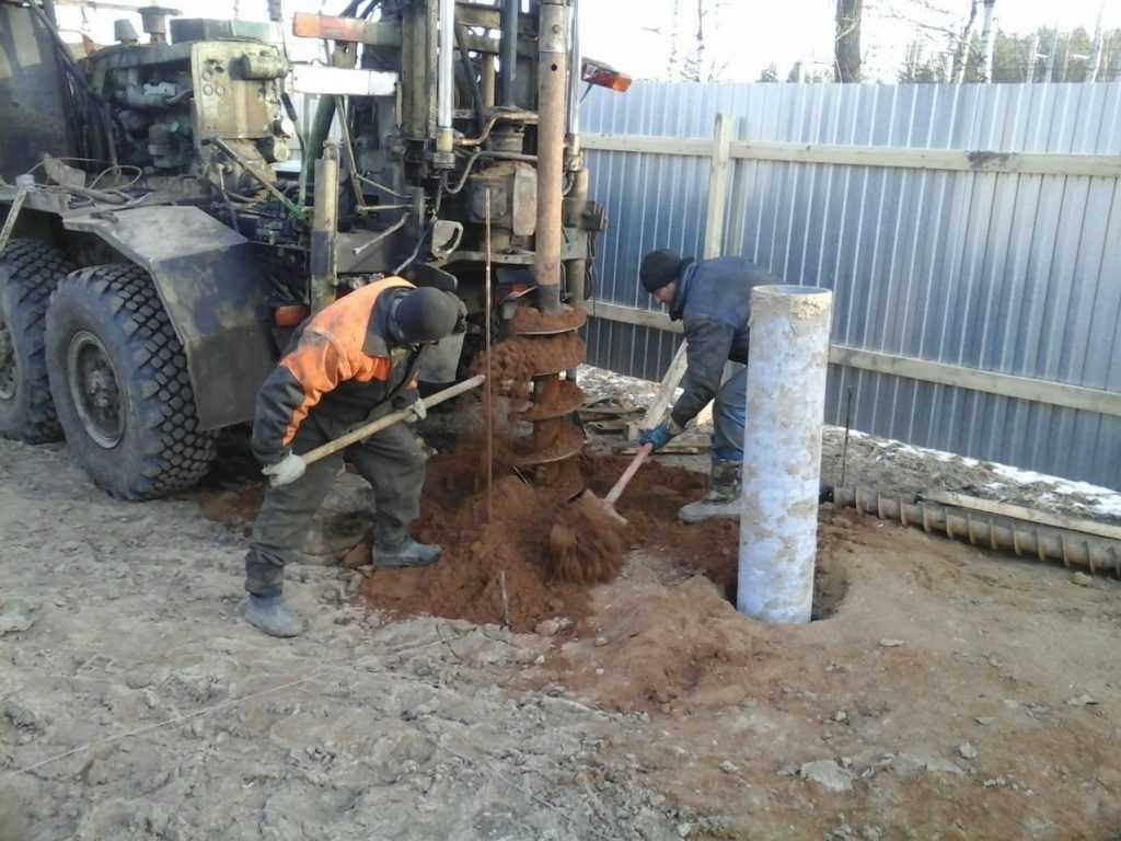 Бурение под шурф производится в центре ствола, и в период работы делается обсадка при помощи труб.