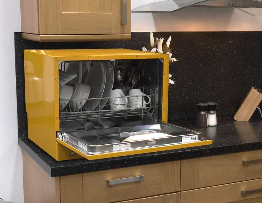 Настольная посудомойка — компактная машина габаритами с микроволновую печь. За цикл такая “малышка” в среднем очистит 5 комплектов посуды. Для семьи из трех человек или холостяка вполне достаточно.