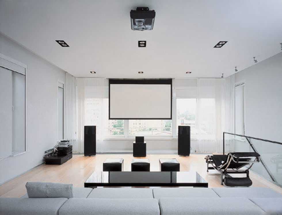 Дизайн домашнего кинотеатра в интерьере современной гостиной
