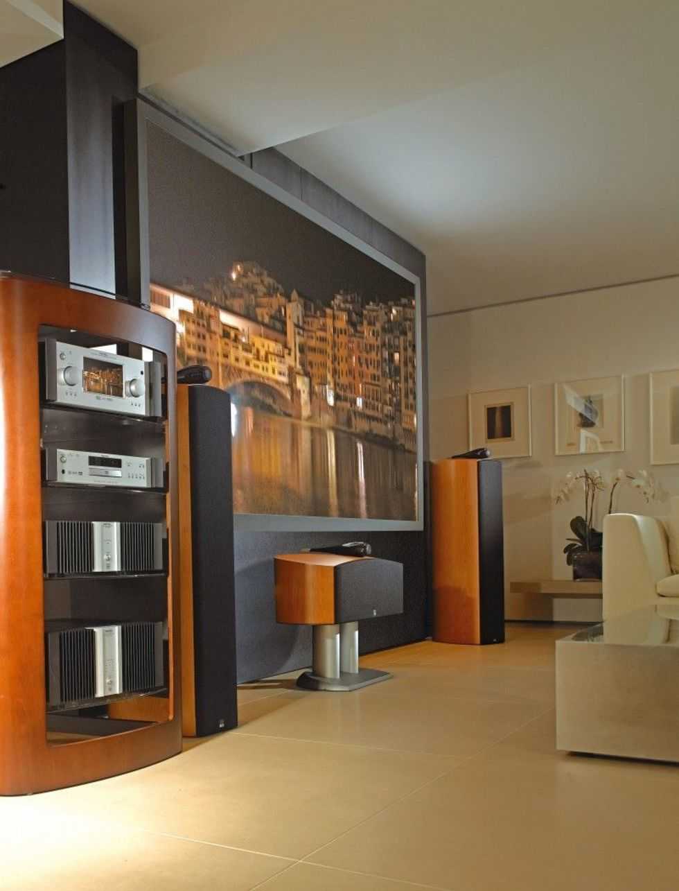 Наиболее аккуратно выглядят колонки, спрятанные в стенных нишах и скрытые акустическими панелями.
