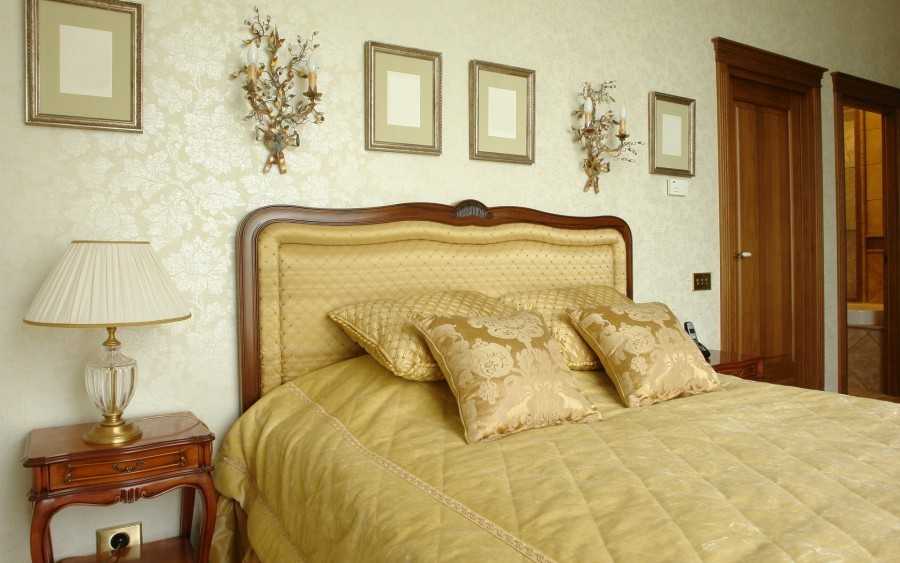 - Классическая интерпретация – сочетание антики с элементами роскоши. Сливочная палитра, кремовые тона, беж – все это для оформления королевских спальных апартаментов. Орнамент затейливый серебристый или с позолотой. В основном растительность или рельефные линии под лепнину из гипса или кожу;