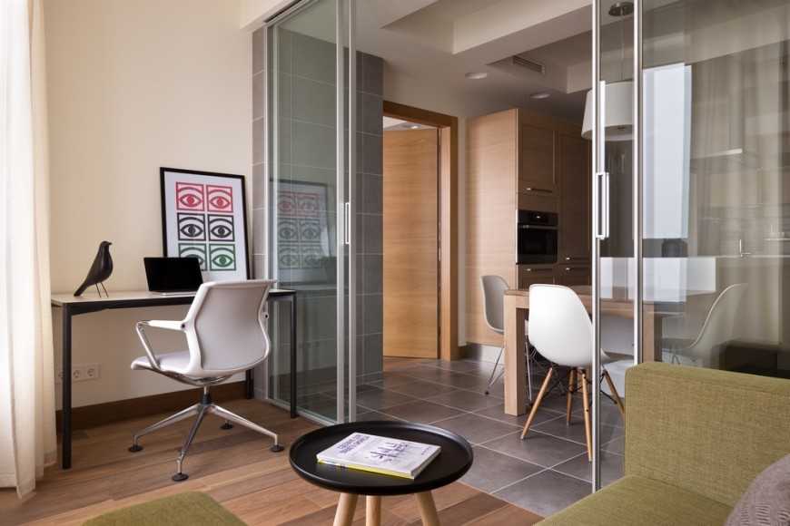 Современный интерьер квартиры со стеклянными межкомнатными перегородками