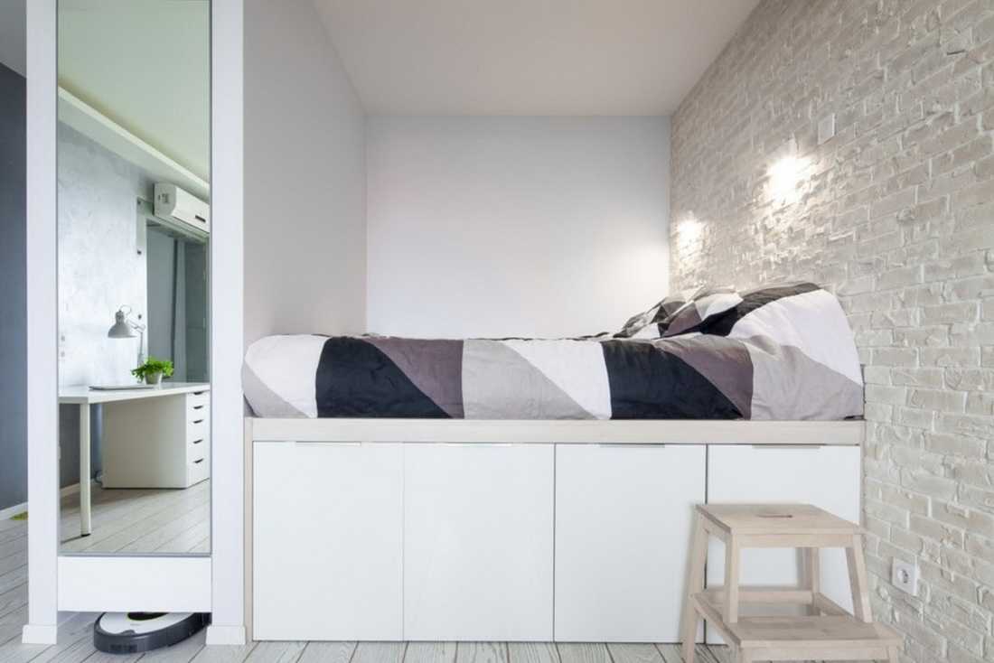 Можно использовать в качестве основания кровати. Ступенька делает явный переход из зоны в зону. |