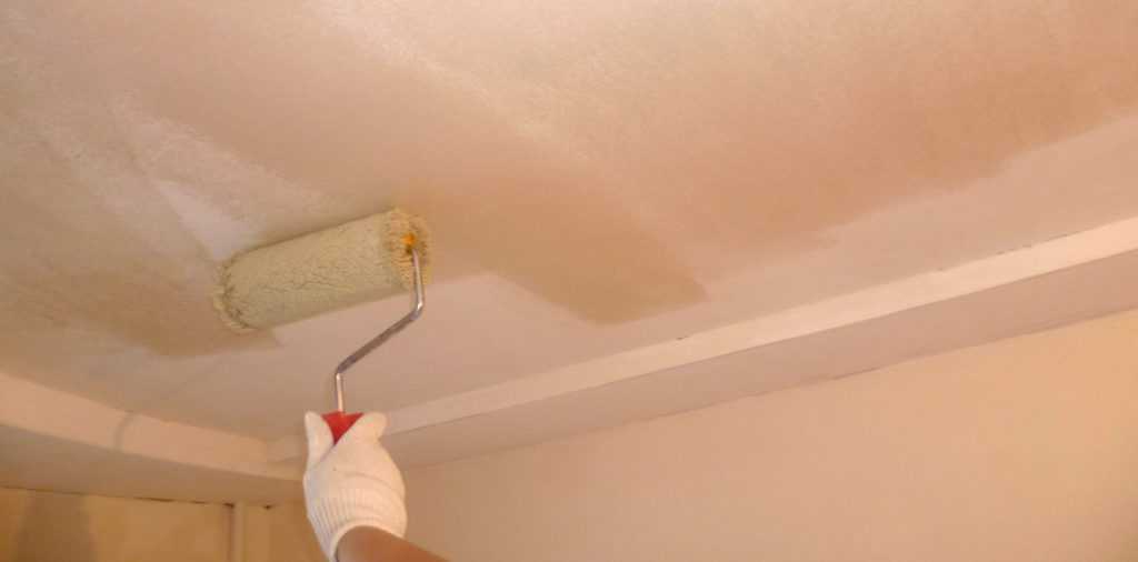 Процесс грунтования является завершающей частью подготовительных работ по ремонту потолка. В результате грунтования поверхность подвергается антисептической обработке для предупреждения грибка и приобретает высокую адгезийность. Если до нанесения грунтовки на потолке видна плесень, её нужно обезвредить антигрибковым средством. После полного высыхания средства можно начинать работать грунтовкой. Для распределения грунтовки используют валик, а неудобные места обрабатывают кистями.