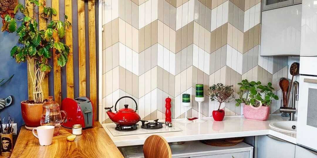Если нет возможности поменять старый кухонный гарнитур, освежить комнату поможет новый фартук. Он же защитит стену от брызг жира или сока. Можно заказать панель из плотного стекла, искусственного или натурального камня, керамики, пластика. Роль фартука может сыграть и обычная плитка — выложите ей пространство от столешницы до начала шкафчиков. Если материал позволяет, старый фартук можно просто покрасить.