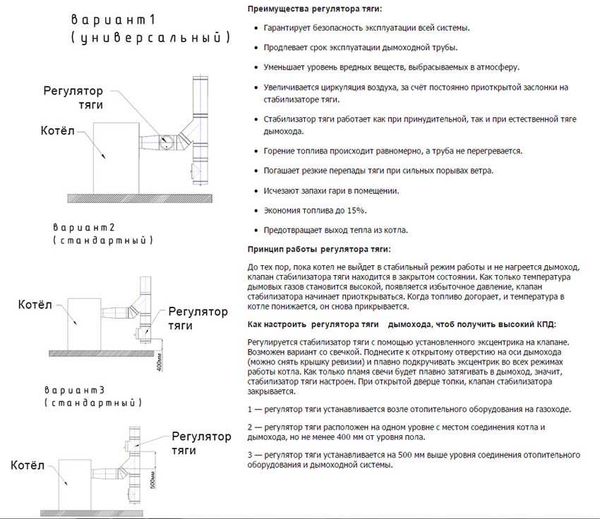 Устанавливают стабилизатор тяги в трёх локациях и только в помещении котельной: