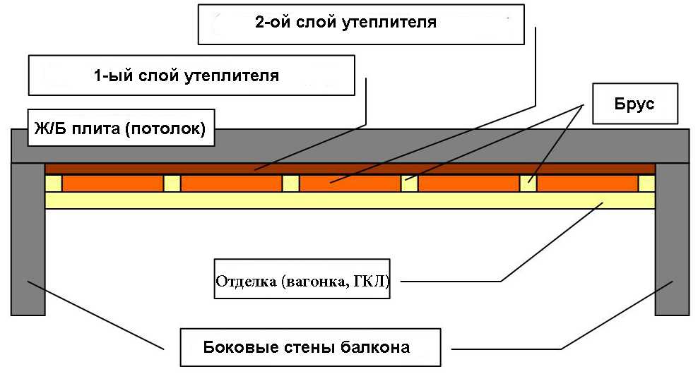 Схема утепления и отделки потолка на балконе.