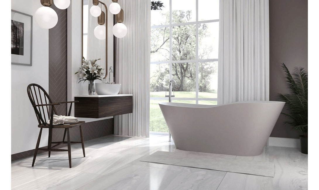 Мраморная ванна — очень прочная и элегантная, подходит для очень просторной, современной и роскошной ванной комнаты.