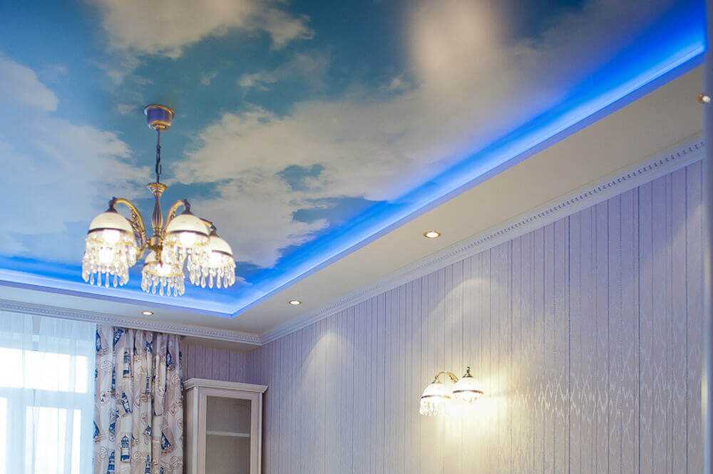 Важным элементом такого потолка является то, что при установке конструкции монтируются профили, а уже на них крепятся полотна. Благодаря этому пространство не уменьшается, что идеально подходит для небольших помещений.