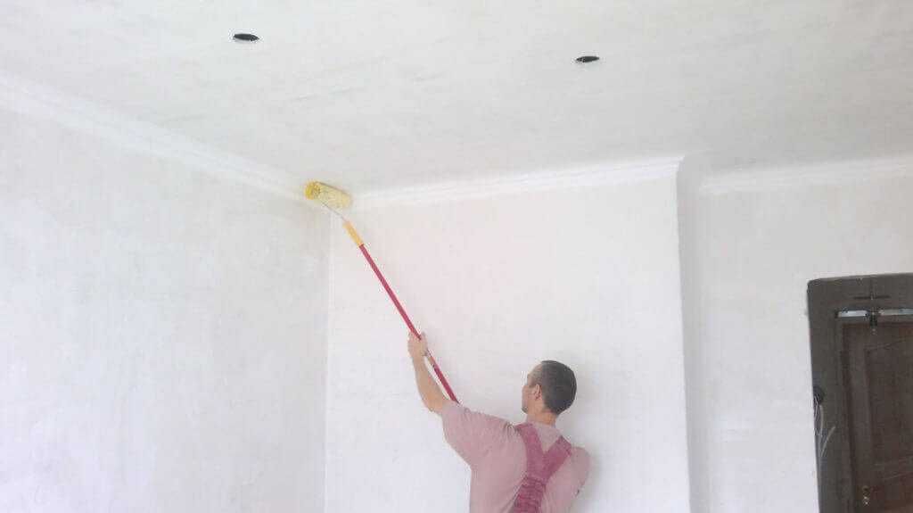 Как правило, в любых старых помещениях потолки обрабатывались побелкой, штукатуркой или грунтовкой, поэтому способы очистки поверхности известны издавна и достаточно просты. Для начала при помощи стандартного валика на штанге смачиваем теплой водой всю поверхность, с каждым мазком все сильнее выжимая воду в отделку. Как только валик полностью высыхает, следует сразу же смачивать его еще раз в воде и продолжать процедуру размачивания. Когда вся поверхность намокла, то при помощи шпателя снимаем слои побелки, обоев или штукатурки до самого основания поверхности из бетона. В случае если помещение большого размера, стоит разделить потолок на небольшие участки и размачивать каждый по очереди.
