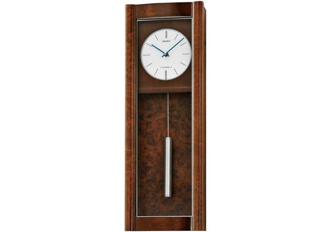 Красивые коричневые настенные часы с маятником от надежного производителя из Японии размером 19х55х8,5 см. Модель украсит каминную, бильярдную, кальянную комнату или стильный кабинет с массивной мебелью. Корпус выполнен из массива ольхи, МДФ, шпона клена. Стекло минеральное, прочное. Аксессуар отличается наличием звукового сопровождения, в наличии 18 мелодий, из них 6 – Рождественские. Seiko QXM287B оснащены датчиком света, поэтому, когда в комнате становится темно, все звуковые сигналы отключаются. Это удобно, ведь звучат мелодии достаточно громко. На белом циферблате расположены большие белые цифры с индексами, которые хорошо видны с дальнего расстояния.