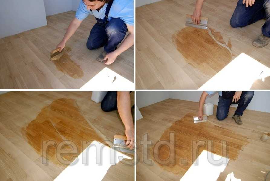 - Для заполнения пустот предназначен специальный клей – ремонтный. Он поможет укрепить расшатанные планки, возникшие при плохой работе укладчиков или по причине износа. Требуется просверлить отверстие в проблемном месте и добавить сквозь него немного воды. Когда пройдет несколько минут, берут шприц с клеем и впрыскивают его внутрь, через 40 минут в среднем процесс закрытия каверны остановится, а отверстие замазывают шпатлевкой и лакируют.