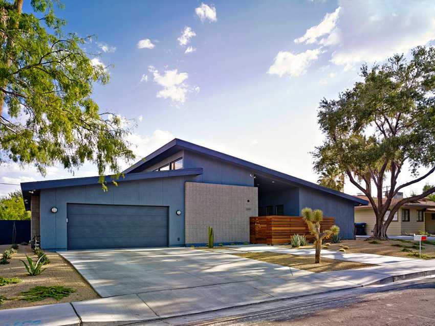 Стилю модерн в ландшафтном дизайне соответствует простота, лаконичность, асимметричность объектов, контрастность материалов и насаждений.