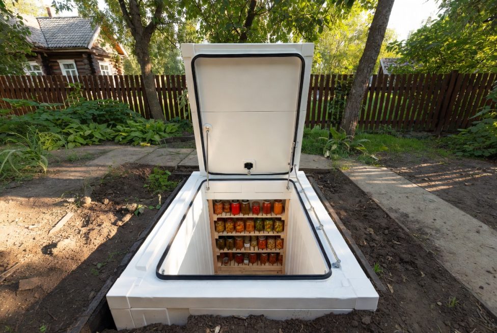 - Какой объём нужен? Ориентир простой: для семьи из четырёх человек с активным огородом достаточно 8–12 кубометров. Для большого хозяйства или если планируется хранить не только банки, но и корнеплоды в ящиках и мешки с зерном — от 15 кубометров.