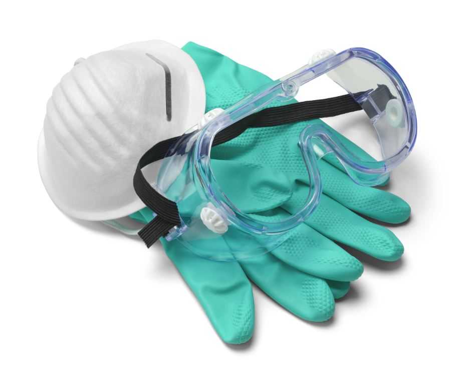 - резиновые перчатки, возможно, респираторы и головные уборы;