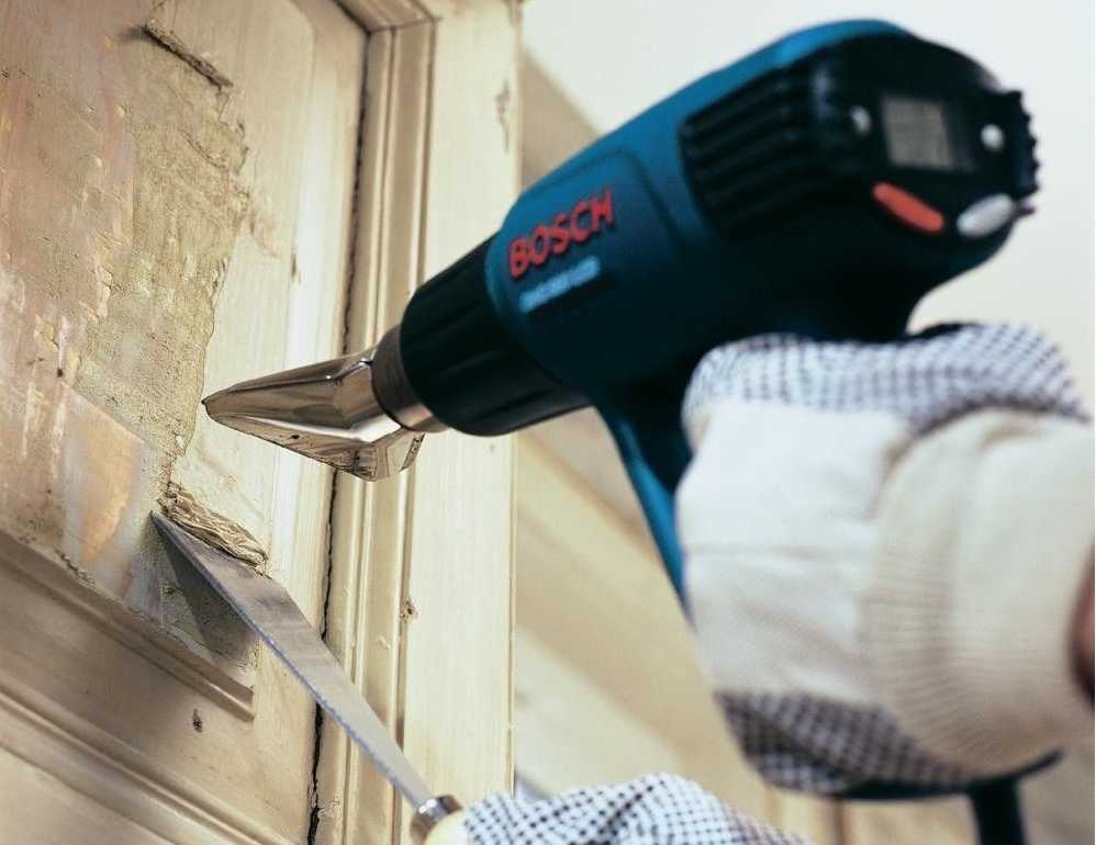 Строительным феном. Это специальный инструмент, который предназначен для нагревания различного рода поверхностей. Он также будет эффективен в применении. Для этого поток горячего воздуха направляют на старое покрытие (только нельзя держать инструмент слишком близко к поверхности, иначе есть риск возгорания). При интенсивном нагревании старая краска размягчится и ее легко можно снять при помощи шпателя.