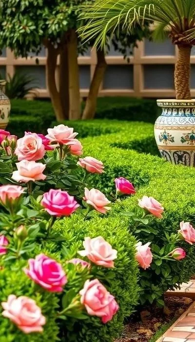 Мирты – вечнозеленые кустарники с ароматными листьями и белыми цветами. Они используются для создания живых изгородей и декоративных композиций. Кипарисы – высокие стройные деревья, символизирующие вечность и стойкость. Они часто используются для создания вертикальных акцентов в саду.