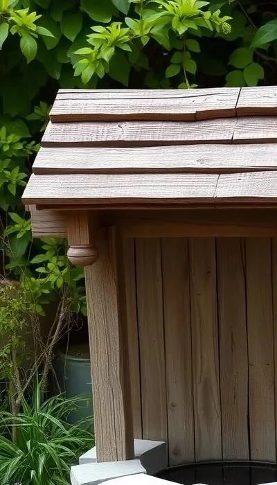 Для создания рустикального стиля применяют эффект выжигания древесины, состаривание и неровную обрезку досок. Колодец из старых досок – отличный вариант для тех, кто ценит винтажный шарм и экологичность. Такие колодцы выглядят особенно аутентично.