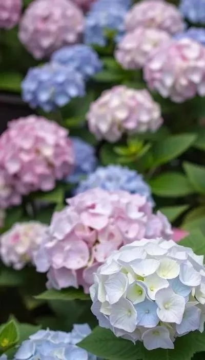 Среди множества сортов гортензий, особенно выделяются те, что пользуются неизменной популярностью у садоводов. Гортензия крупнолистная ‘Endless Summer’ – знаменита своим повторным цветением в течение всего сезона. Её цветки варьируются от розового до голубого, в зависимости от pH почвы. ‘Blue Wave’ – еще один сорт крупнолистной гортензии, отличающийся насыщенным голубым оттенком соцветий при кислой почве.