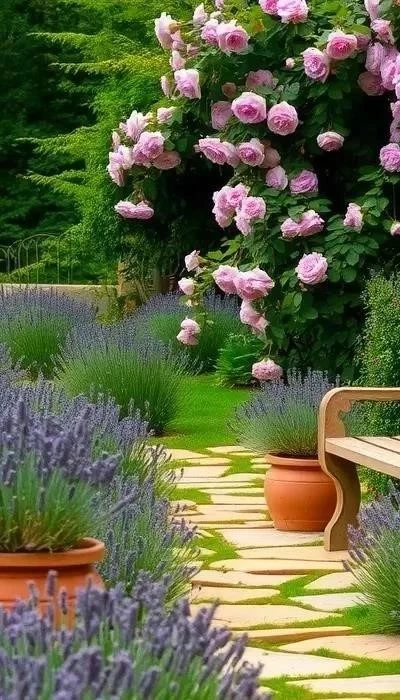 Керамические горшки и вазы – неотъемлемая часть декора для сада прованс. Они могут быть разных размеров и форм, но предпочтение отдается изделиям ручной работы с неровными краями и матовой поверхностью. В горшках можно высаживать лаванду, розмарин, тимьян и другие растения, характерные для прованского стиля. Старинные лейки, корзины и деревянные ящики, используемые в качестве кашпо, добавят саду деревенского шарма.
