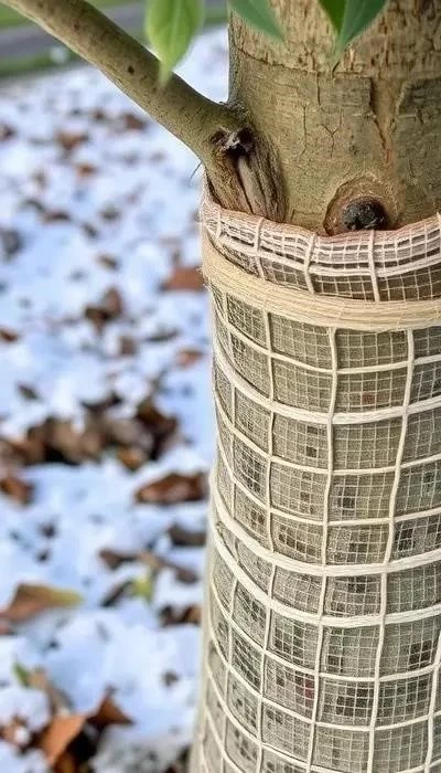 Шаг 5: Защита деревьев от грызунов. Обвяжите стволы деревьев мешковиной, сеткой или специальными пластиковыми лентами. Это предотвратит повреждение коры зайцами и мышами. Также можно использовать отпугивающие средства.
