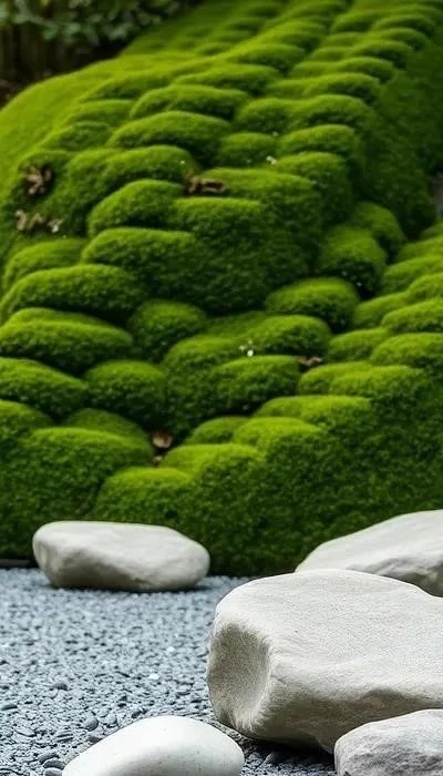 Бамбук и мох добавляют текстуру и умиротворение в сад. Бамбук создает ощущение уединенности и защищенности, а мох придает саду мягкость и естественность. Эти растения прекрасно сочетаются с другими элементами сада, создавая гармоничную композицию.