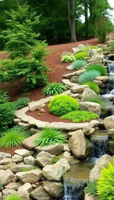 Для создания каскадных композиций используйте многолетники: хосты, астильбы, гейхеры. Они добавят саду ярких красок и текстур. На солнечных склонах прекрасно растут розы, лаванда, шалфей. В тенистых местах – папоротники, медуница, тиарелла.