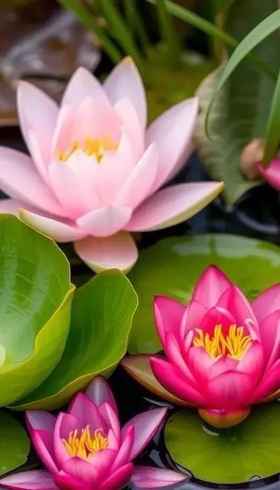 Водные растения делятся на несколько групп: плавающие (кувшинки, водяной гиацинт), корневищные (камыш, рогоз), погруженные (элодея, валлиснерия) и прибрежные (ирисы, калужница). Плавающие растения красиво цветут и создают тень, но могут быстро разрастаться. Корневищные растения укрепляют берега и служат фильтром для воды. Погруженные растения насыщают воду кислородом. Прибрежные растения украшают берега и создают переход от суши к воде.