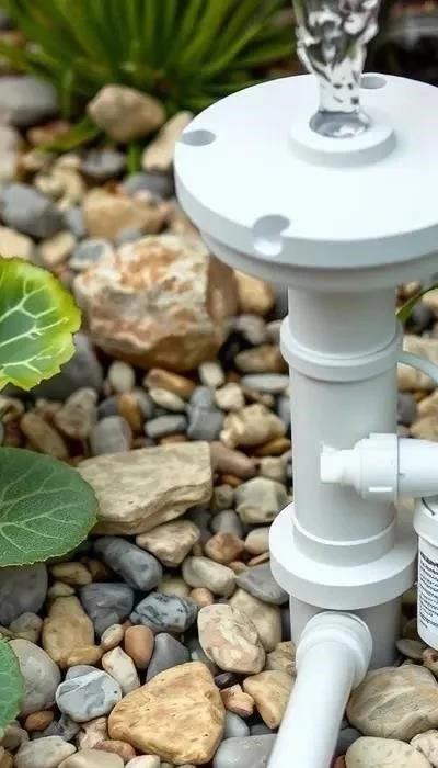 Материалы: насос для фонтана, трубы (диаметр подбирается под насос), емкость для воды (бочка, пластиковый контейнер, готовая чаша), камни для декора, гидроизоляционная пленка или герметик, декоративные элементы (растения, подсветка). Инструменты: лопата, дрель, уровень, клей, ножницы или строительный нож.