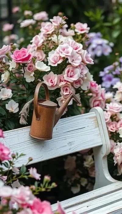 Винтажные аксессуары: детали, создающие настроение. Винтажные аксессуары – это то, что делает шебби-шик уникальным и неповторимым. Используйте старинные лейки, садовый инвентарь, фарфоровые статуэтки, кружевные салфетки и другие декоративные элементы, которые придают саду особый шарм.