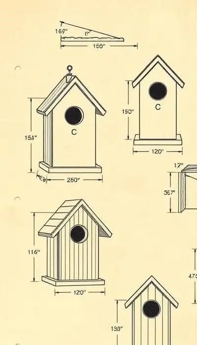 Существует множество вариантов чертежей скворечников, адаптированных под разные виды птиц и предпочтения мастеров. Рассмотрим несколько популярных моделей. Классический скворечник для скворцов имеет размеры: высота – 30-40 см, ширина и глубина – 15-20 см, диаметр летка – 5 см. Крыша должна быть двускатной с небольшим выносом для защиты от дождя. Угол наклона крыши – около 30-45 градусов.