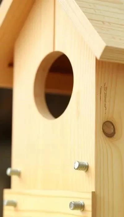 Важно: При сборке корпуса используйте качественные гвозди или саморезы, чтобы скворечник был прочным и долговечным. Убедитесь, что все соединения плотные и надежные. Не используйте токсичные материалы при обработке скворечника. Съемная крыша облегчит чистку скворечника в будущем. Проверьте, чтобы внутри не было острых выступов или заноз, которые могут поранить птиц.