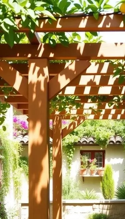 Терракота – еще один важный элемент средиземноморского стиля. Терракотовые горшки, вазы, плитка и другие декоративные элементы добавляют саду тепло и уют. Они прекрасно сочетаются с каменной кладкой и создают ощущение солнечного тепла. Не менее важную роль играет ландшафтный дизайн с использованием белых стен, которые отражают солнечный свет и создают ощущение простора и свежести. Перголы, увитые виноградом или другими вьющимися растениями, обеспечивают тень и создают уютные уголки для отдыха.